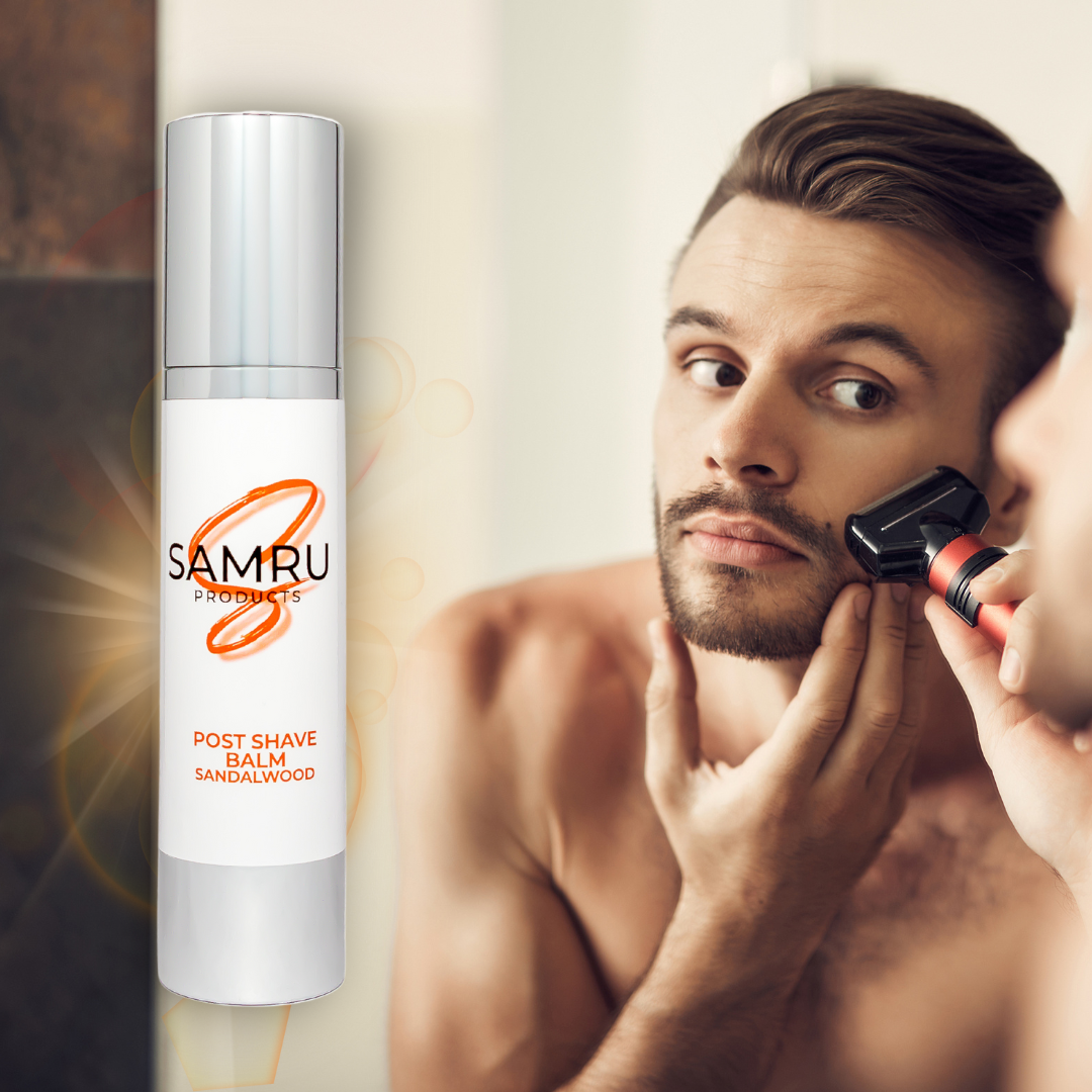 SAMRU Products' Post Shave Balm (Sandalwood) is a non-shiny, non-oily, alcohol free balm that leaves the skin feeling soft and refreshed after shaving. Our Post Shave Balm is currently available in Sandalwood.